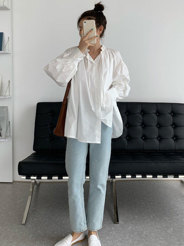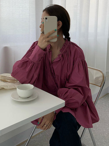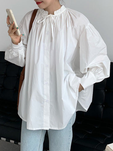 Städtische lose Puffärmel agarische Schnürsenkel Falbala Feste Farben Blusen