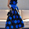 A-line lose Taschen Polka-Punkt Split-Gelenk gebundener Taille Revers Maxi Kleider Hemdkleid