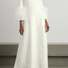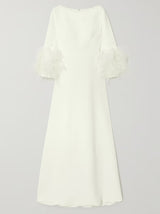 Elegantes einfaches Schwarz -Weiß -Feder -Langarmpartykleid