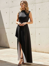 Unregelmäßige Ausschnitten dünner Kontrastfarbe rundem Hals Maxikleider