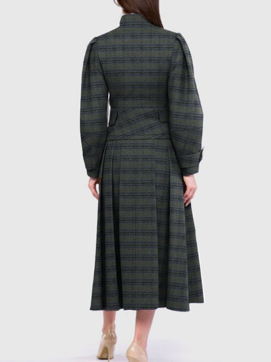 A-Line Long Sleeves Buttoned Plaid Split-Joint Stand Collar Sets Two-Piece Sets
