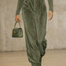 Hochgeschnittene, plissierte Samthose in Unifarbe mit Taschen