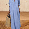 Lange Ärmel gestreifte Revers Maxi -Kleider