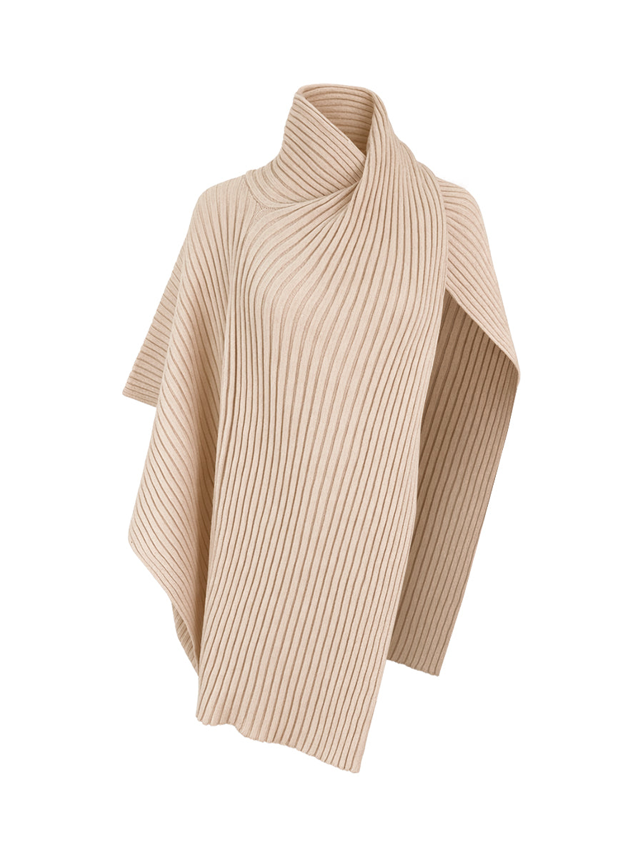 Lockere, asymmetrische, einfarbige Pullover mit hohem Kragen und geteilten Nähten