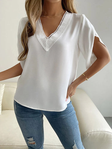 Medias mangas hechas hechas huecas de unión en V blusas y camisas de cuello en V