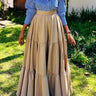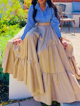 Blusa de solapa rayada de articulación dividida + falda plisada de cintura alta de línea A