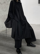 Mangas largas sueltas sólido color sólido dividido camisetas de cuello redondo de unión dividida