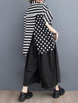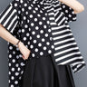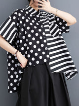 Bolsas de color de contraste de mangas cortas sueltas Polka Polka-back back-arco rayado blusas de rayas de rayas camisas