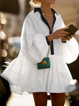 Camiseta de color de manga larga de manga larga de línea A mini vestidos de vestidos