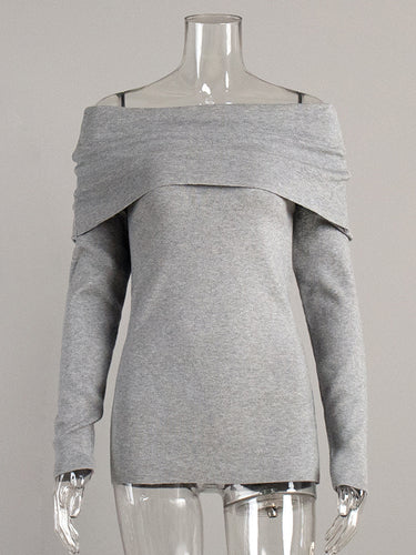 Mangas largas Color sólido suelto Séteres de suéteres fuera del hombro