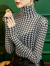 Mangas largas Tamaño de tamaño grande Contraste Color Split-articulación Camisetas de cuello alto