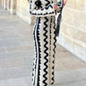Mangas largas de cintura alta impresas con estampado de cuello redondo maxi