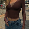 Long Sleeves Skinny Solid Color V-Neck T-Shirts Tops