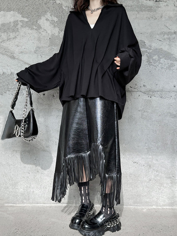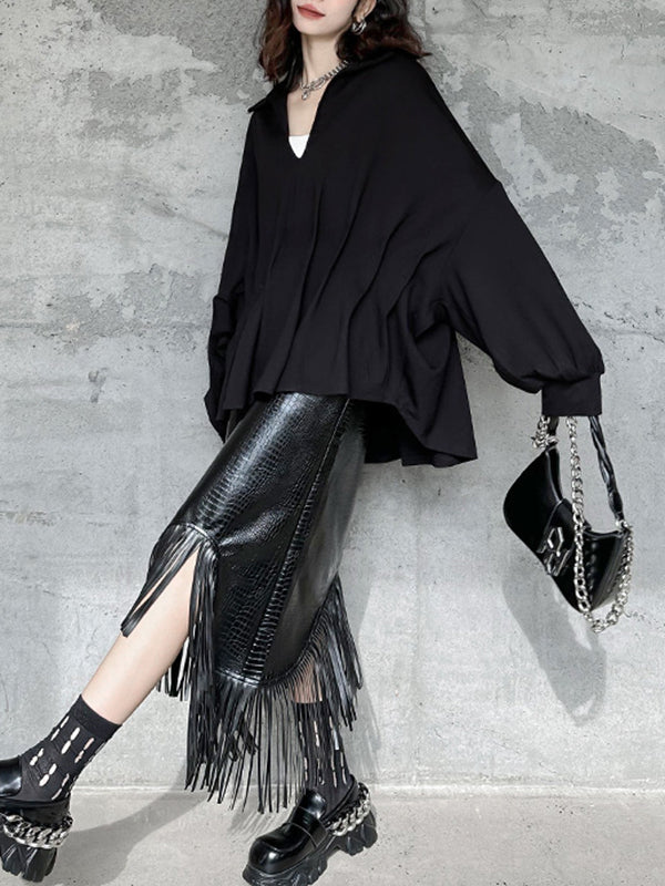 Batwing Sleeves Long Sleeves Pleated Solid Color Deep V-Neck Blouses&Shirts Tops