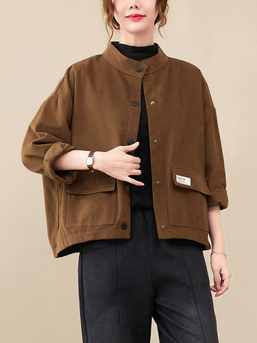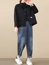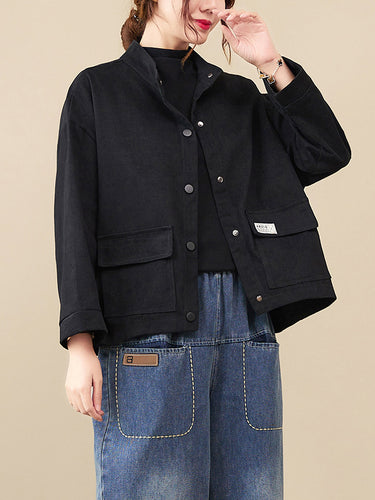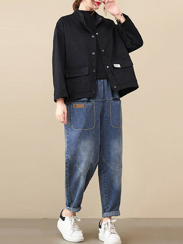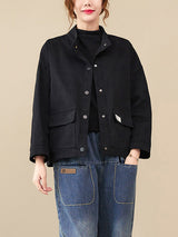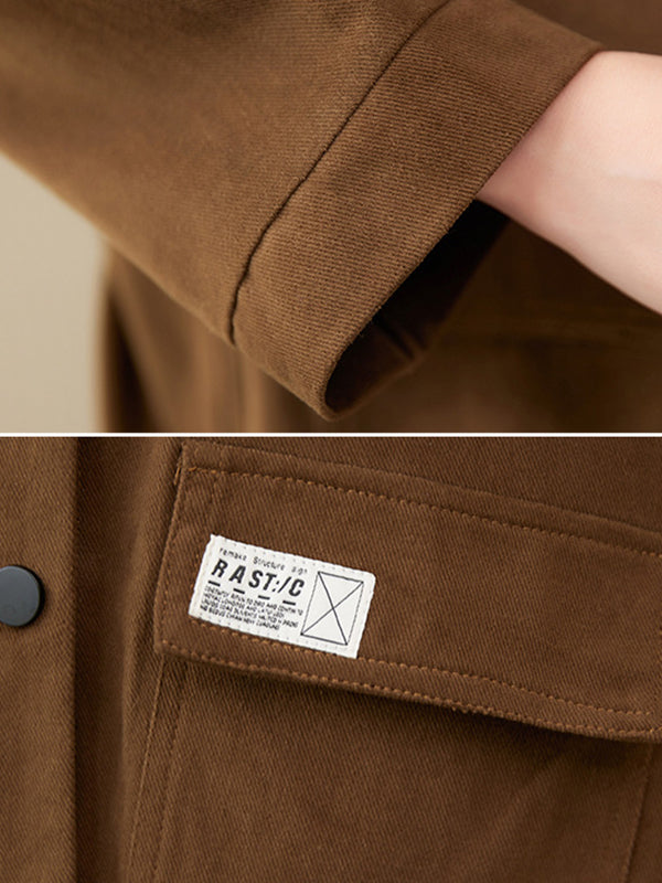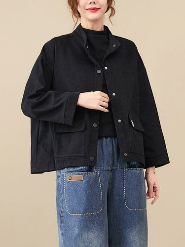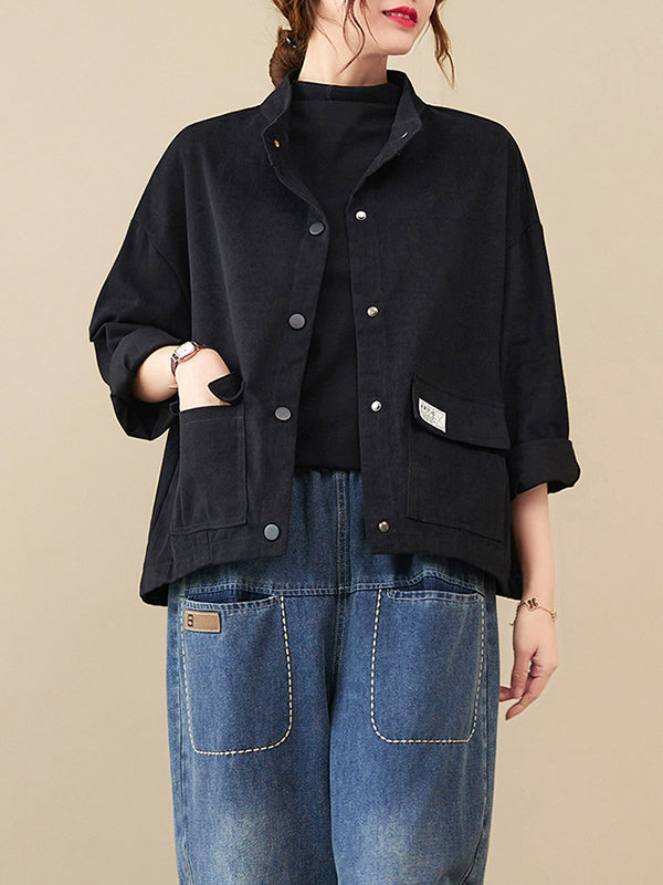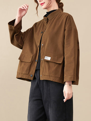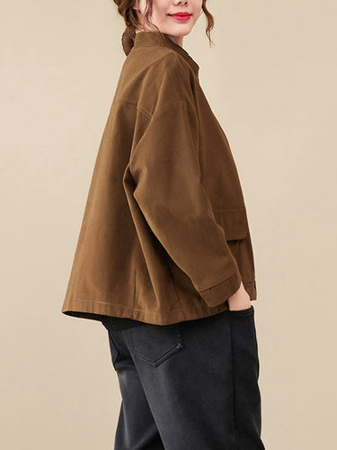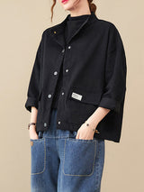 Mangas largas vintage Color sólido botonado
