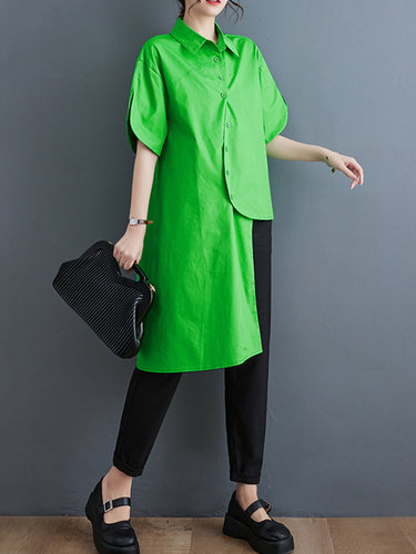 Recorte irregular camisas de solapa de color sólido
