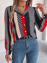 Camisas de collar de lunares de contraste de mangas largas con muescas de cuello con muesca camisas
