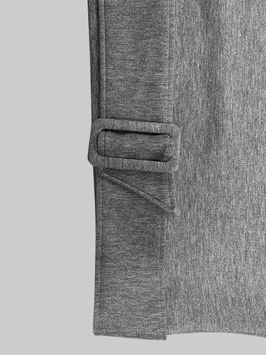 Mangas largas Cinturón suelto Hebilla de color sólido Copas de sudadera de cuello redondo