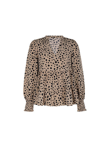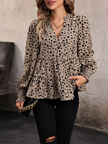 Mangas largas elasticidad suelta Polka Polka Dot-articulación en V blusas y camisas de cuello en V