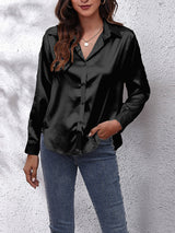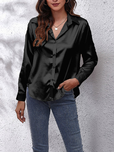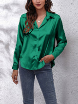 Mangas largas blusas de solapa de color sólido suelto
