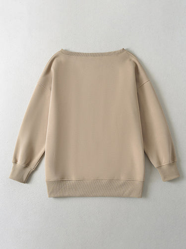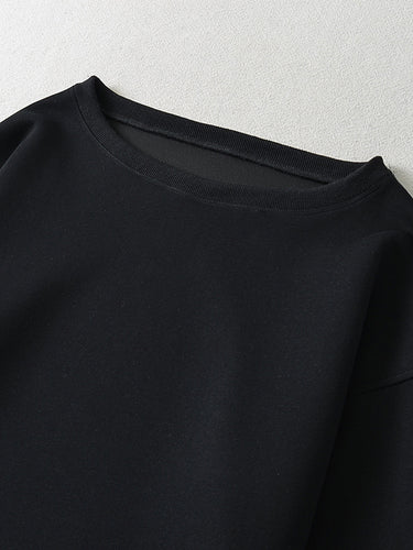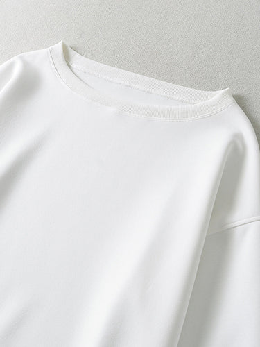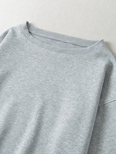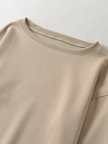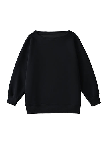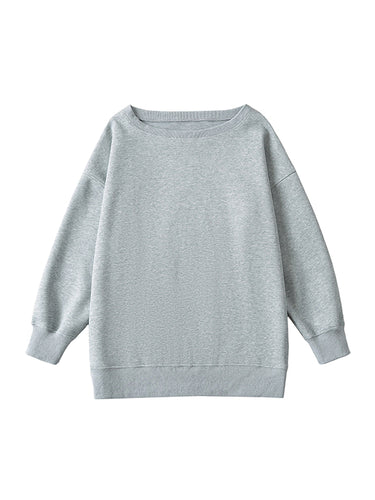 Mangas largas en color sólido suelto de color ronda de unión redonda tops de cuello redondo