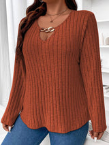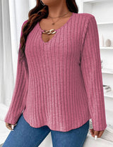 Mangas largas en color sólido suelto camisetas con cuello en V