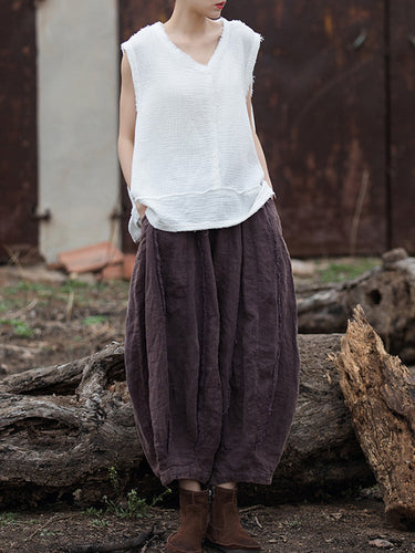 Top de chaleco de cuello en V plisado con flecos con flecos con flecos