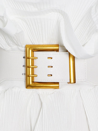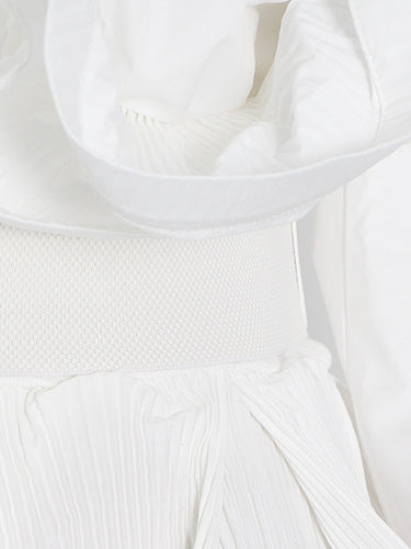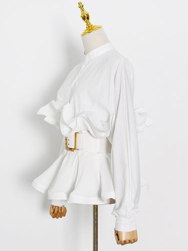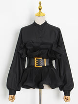 Elegantes mangas largas sueltas Falbala Falbala Belte de color sólido Collar Blusas y camisas Tops