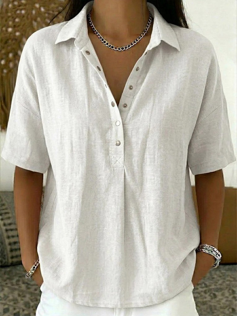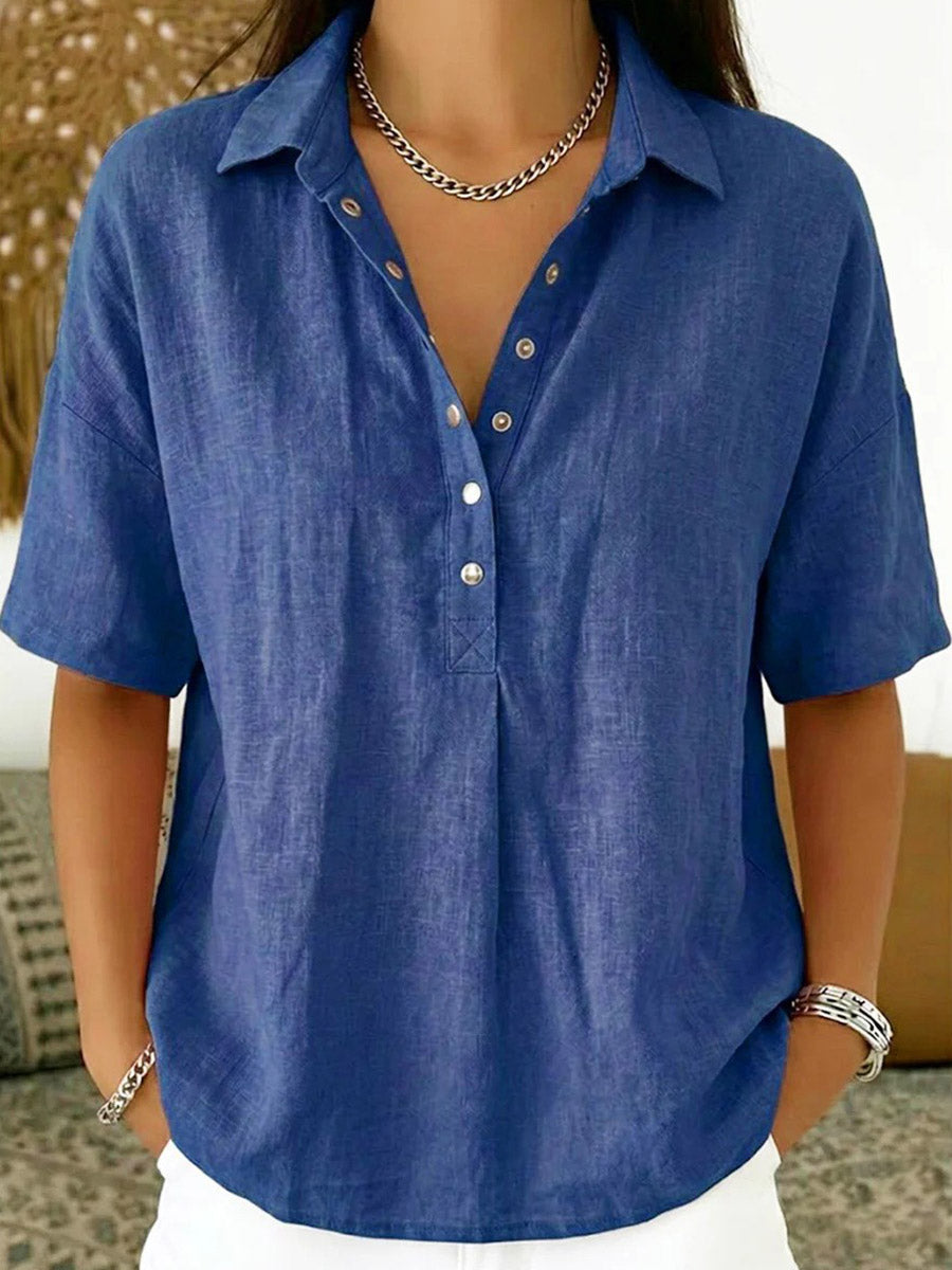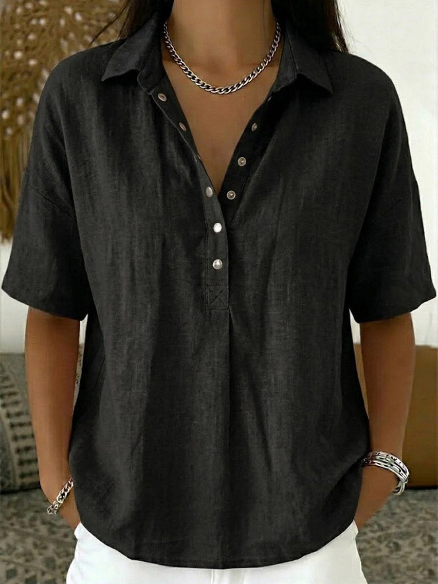 Half Sleeves Loose Buttoned Solid Color Lapel Blouses&Shirts Tops