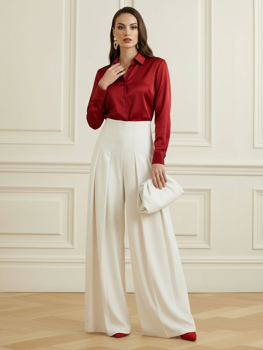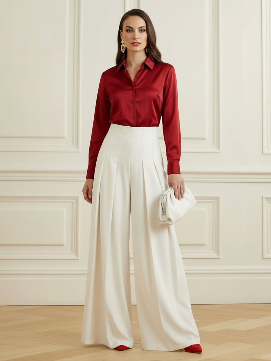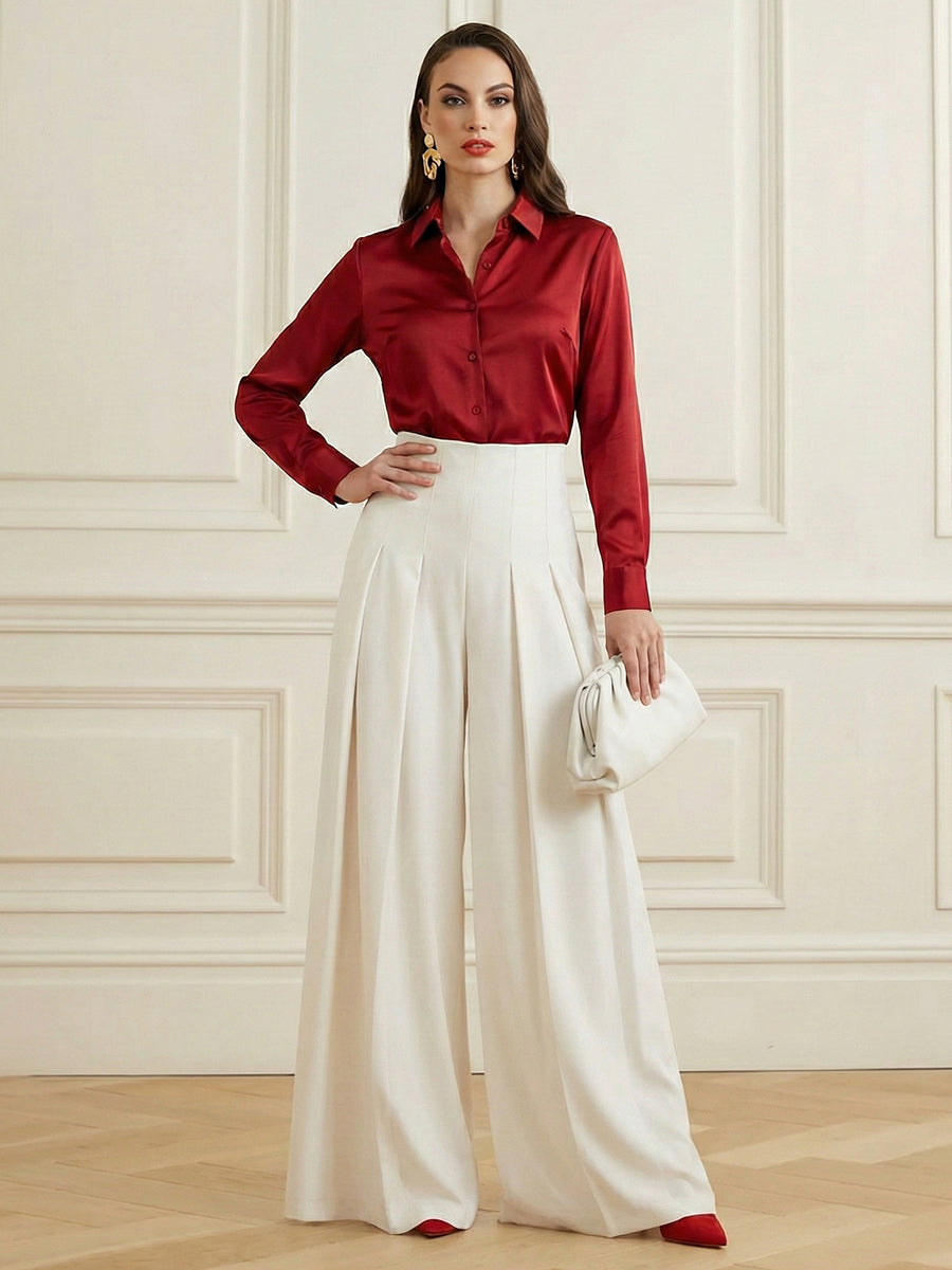 High Waisted Loose Buttoned Pleated Solid Color Pants