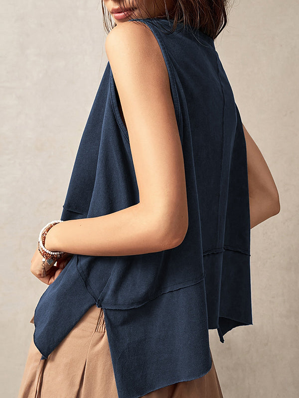 Hipster Loose Comfort Solid Color Split-Joint Round-Neck Tank Top