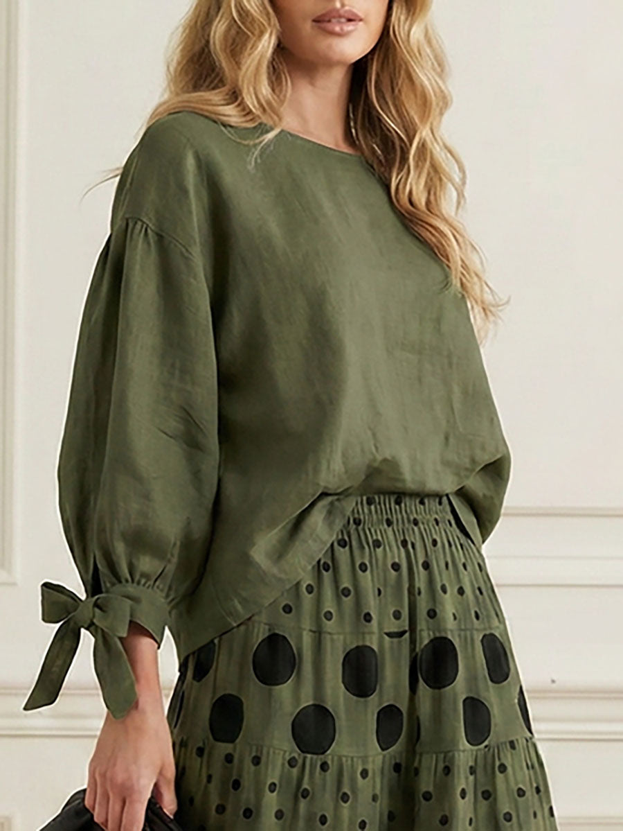 Mangas largas sueltas de color sólido asimétrico atado con blusas y camisas de un solo hombro