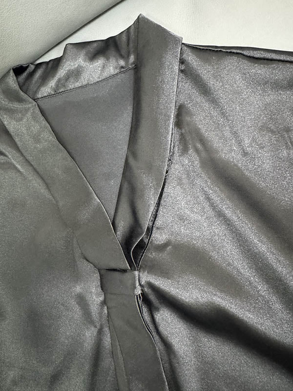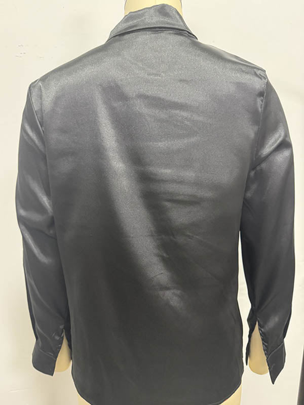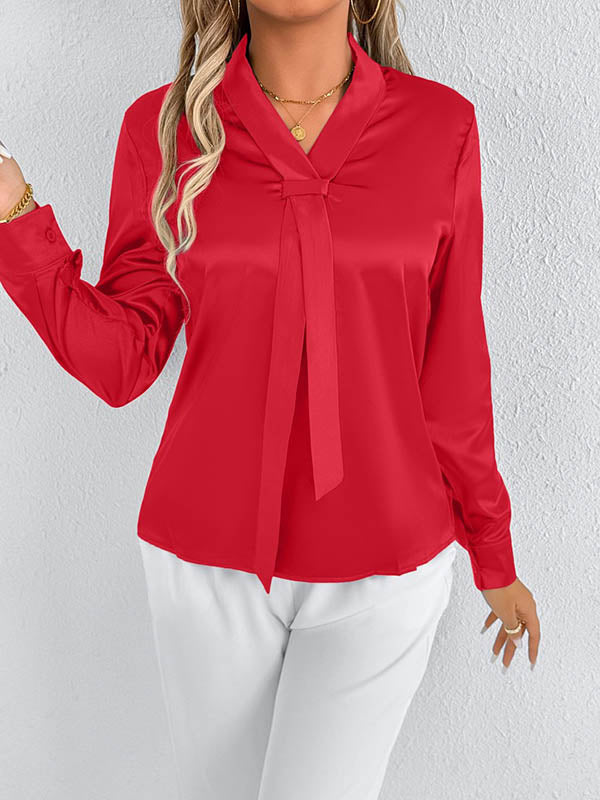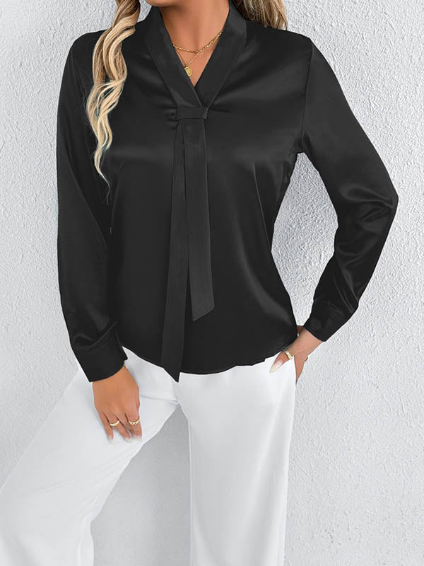 Long Sleeves Loose Solid Color Split-Joint Streamer Scarf Collar Blouses&Shirts Tops