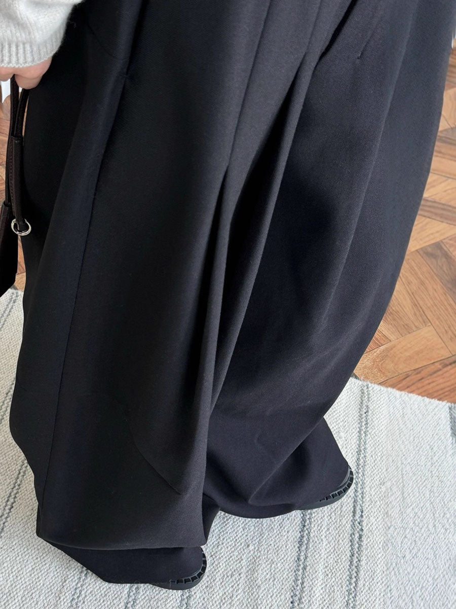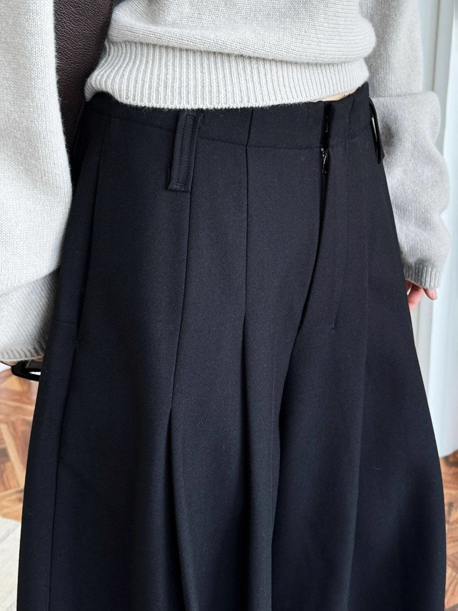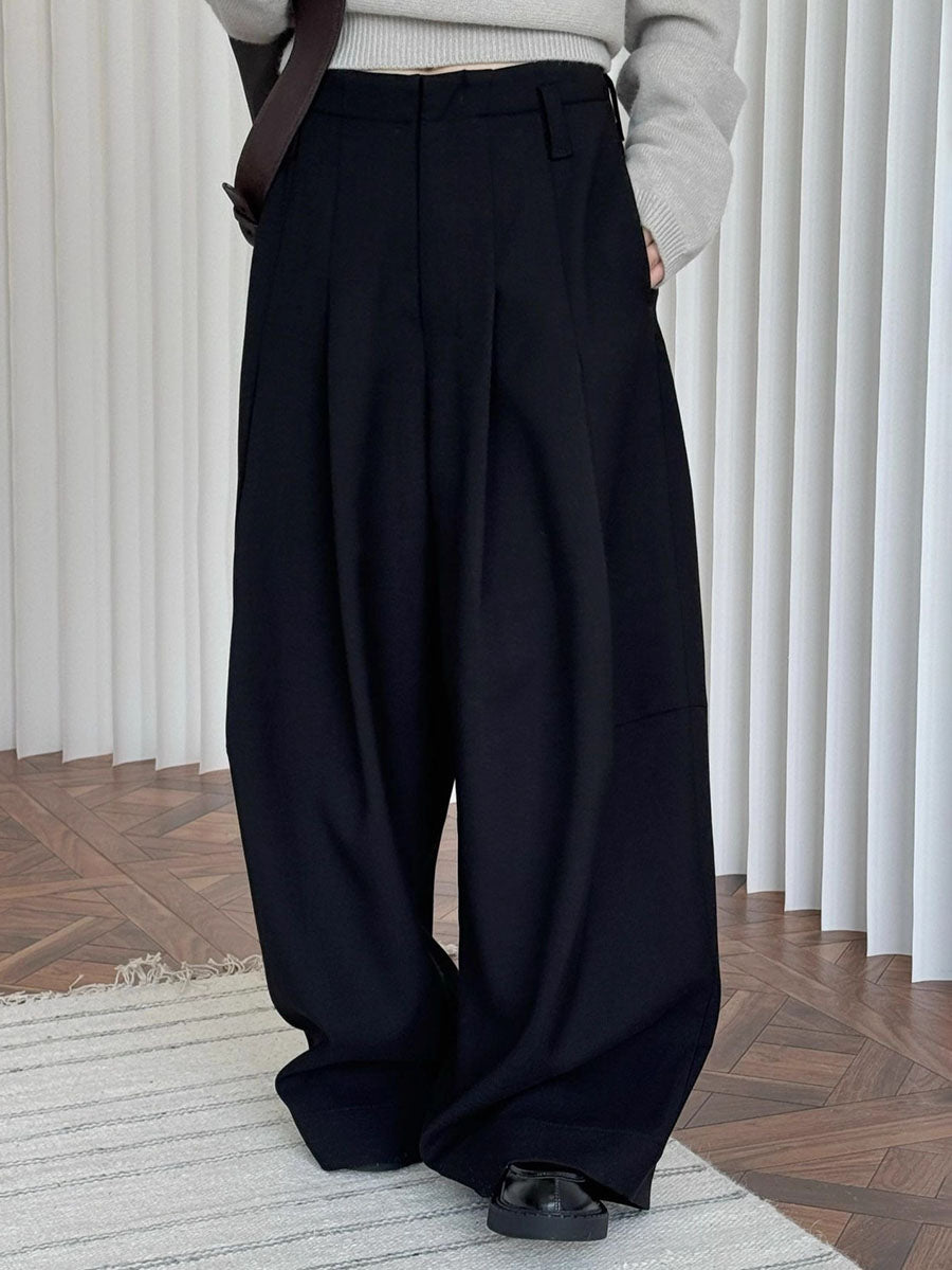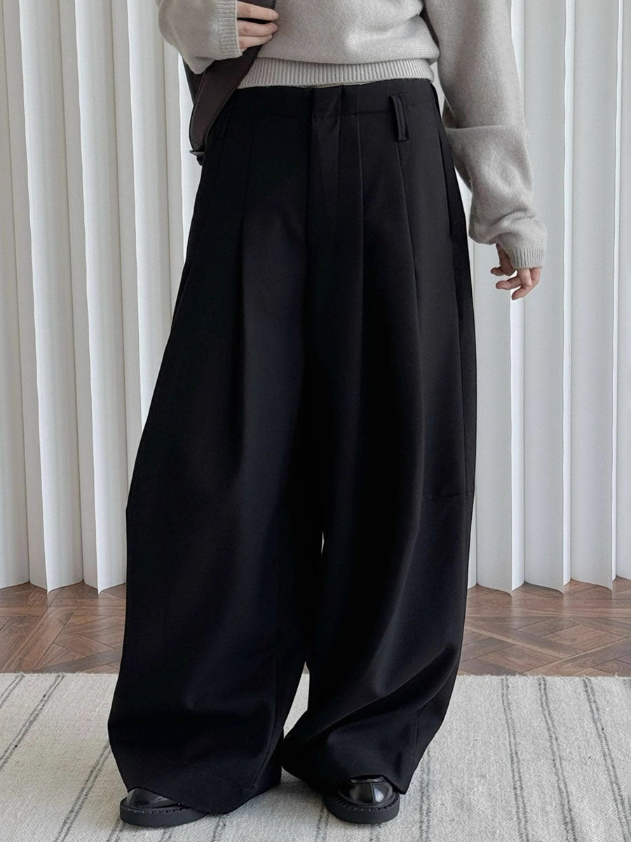 Loose Wide Leg Buttoned Pleated Pockets Solid Color Zipper Suit Pants