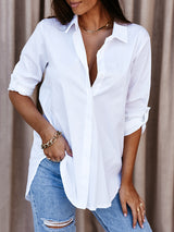 Manches longues décontractées boutones en vrac color collier de revers à blans de chemises