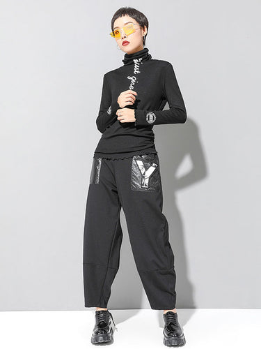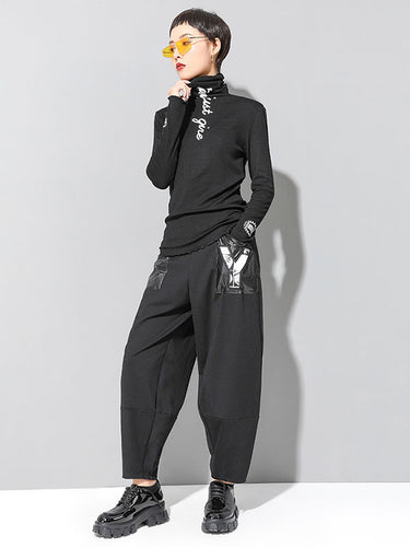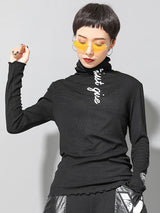 Manches longues décontractées lettre maigres imprimer des t-shirts à col haut à col haut