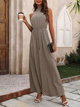 Élasticité large de la jambe large imprimée à col rond à col rond