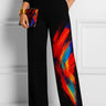 Wide Leg Contrast Color Pockets Printed Pants Trousers