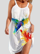 A-line lâche Animal imprimé plissé Spaghetti-neck Mini robes