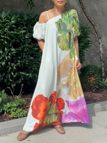 A-line élasticité à fleur imprimé robes maxi à un épaule