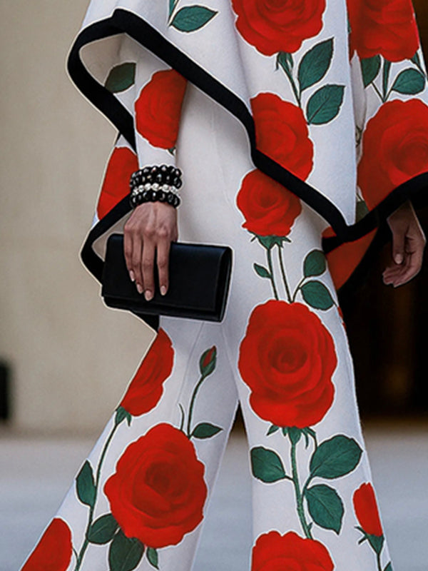 Loose Wide Leg Flower Print Casual Pants Bottoms Trousers