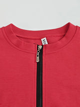 Long Sleeves Loose Contrast Color Pockets Split-Joint Zipper Round-Neck Midi Dresses