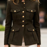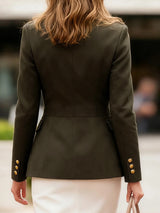 Long Sleeves Buttoned Pleated Pockets Solid Color Stand Collar Outerwear