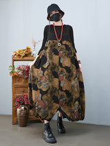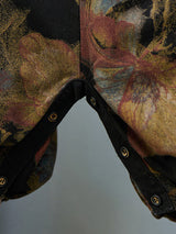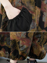 Retro vintage artistique Vintage Loose Floral imprimé à col carré Sans manches