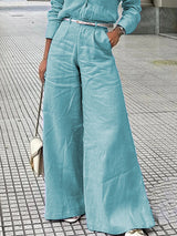 Step into Urban Chic with Our White Wide - Leg Linen Pants