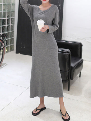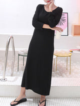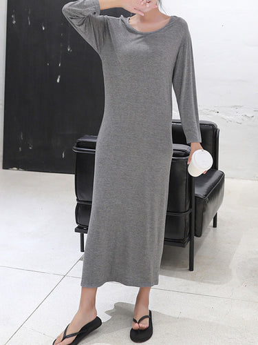 Couleur solide modale simple robe midi à manches longues