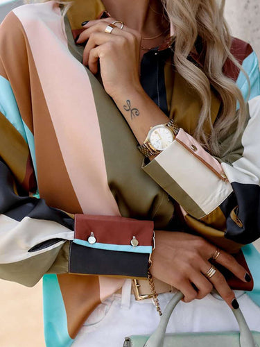 Manches longues Couleur de contraste lâche Blans de revers imprimés