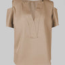 Manches courtes en vrac couleur solide à épaule froide à la joint de chemises à épaule froide