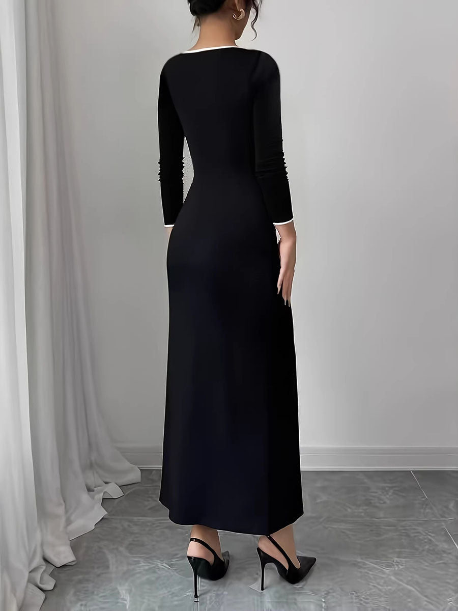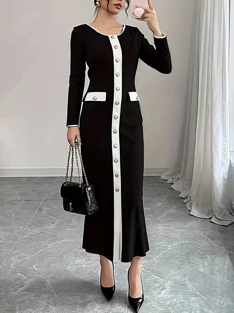 Bodycon Long Sleeves Buttoned Split-Joint Round-Neck Maxi Dresses