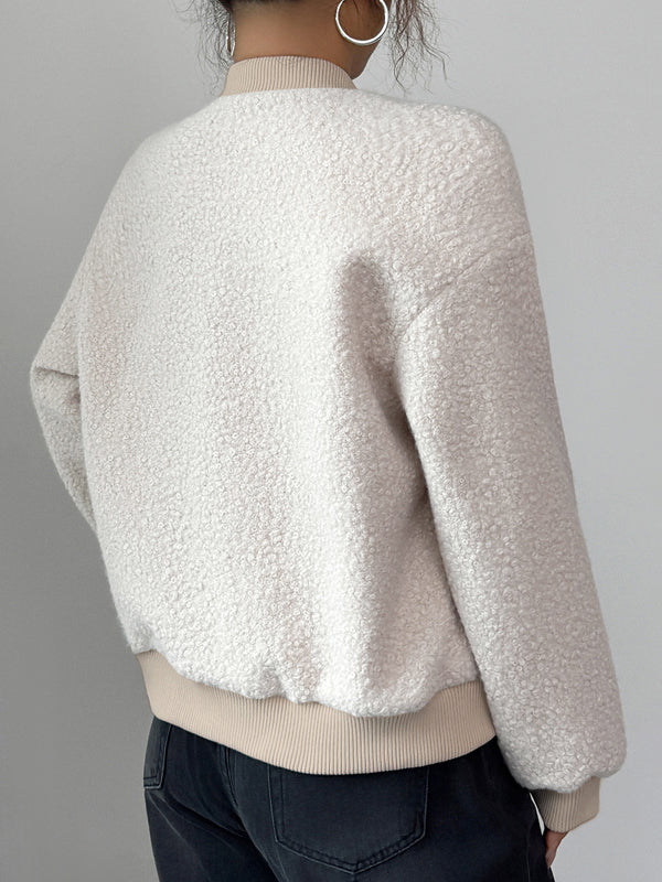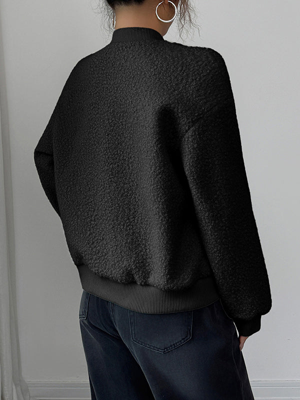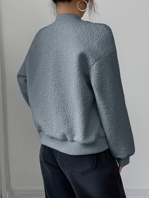 Long Sleeves Buttoned Elasticity Pockets Solid Color Collarless Jackets&Coats